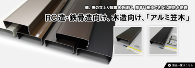 - 金属薄板加工品にアルミ笠木シリーズUPしました。木造用、RC造、鉄骨造それぞれカラー、オプション豊富にご用意しております。どうぞご利用下さい。