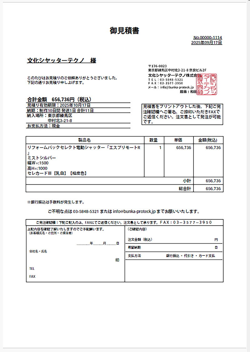ガレージシャッタープランについて、概算金額は確認できたのですがこちらを見積書として形にしておきたいのです。