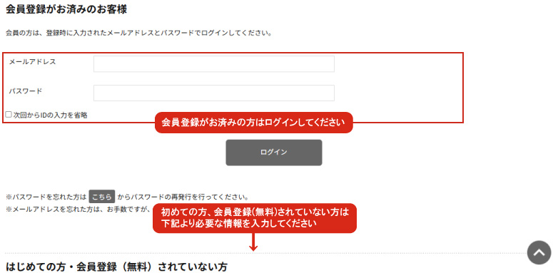 ログイン・またはお客様情報をご入力ください。※会員登録はされなくてもお見積書は発行可能です。