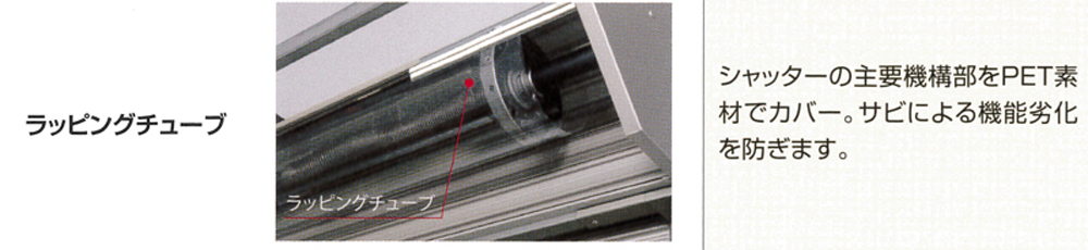 シャッターの巻取り部分を、PET素材でカバーして機能劣化から守ります。