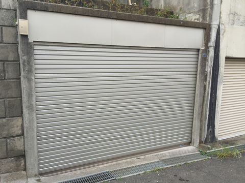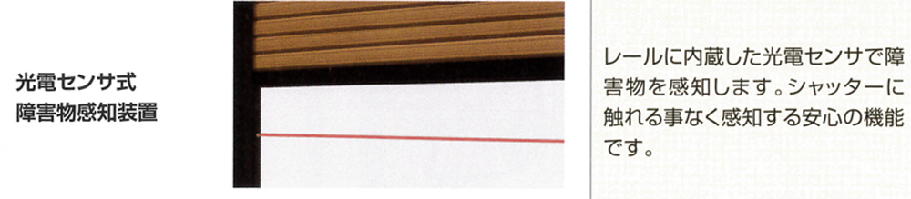 人や車両に接触することなくシャッターが停止する光電管センサー安全装置になります。