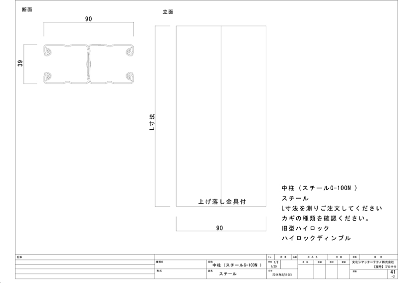 文化シヤッター製中柱スチール 【G-100N型】(アーモンドステン)m/¥9,900です。販売は1mから2999mmまでになります。