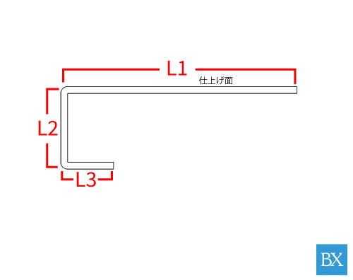 厚さ1.6㎜の鋼板に亜鉛メッキを施した錆に強い板の片側化粧曲げ加工品です。ご希望の曲げ寸法をお選びいただき、オプションでご希望長さのカット加工も承っております。