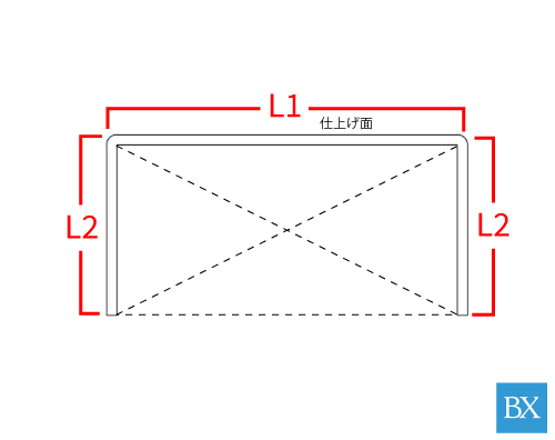 小窓脇の▼をクリックいただき、辺1・2の寸法をお選びください。単位は㎜です。