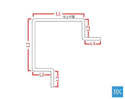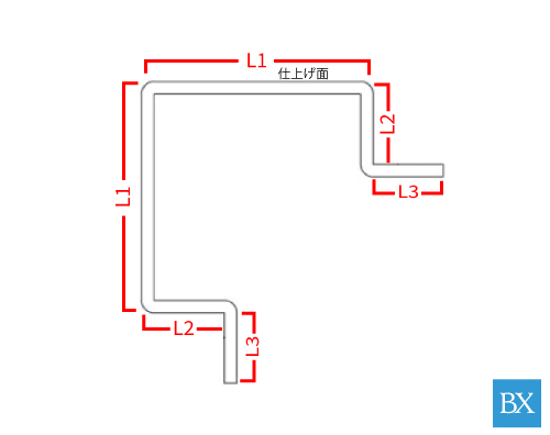 500㎜から1000㎜までの製作範囲でご希望の長さに曲げ加工品を切断加工いたします。※ご希望寸法カット後の端材は商品に含まれませんのでご注意ください。