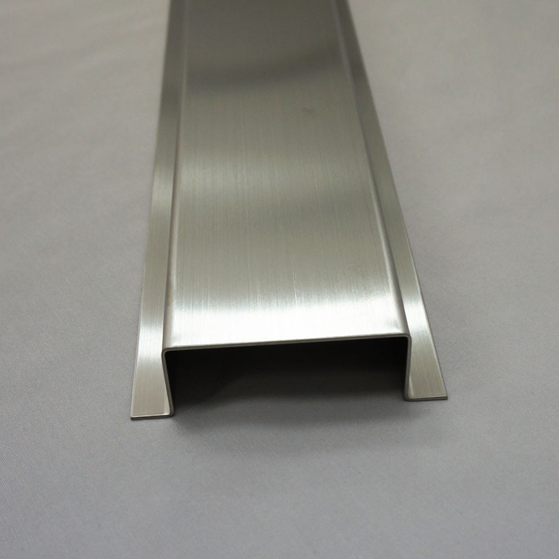 304ヘアライン加工品厚さ1.5㎜板のハット型曲げ加工品です。ご希望の曲げ寸法をお選びいただき、オプションでご希望長さのカット加工も承っております。