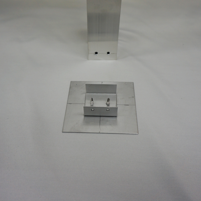 • 角パイプなどの柱を建てる際、あらかじめ、ベースにコの字受け曲げ物を固定しておきます。