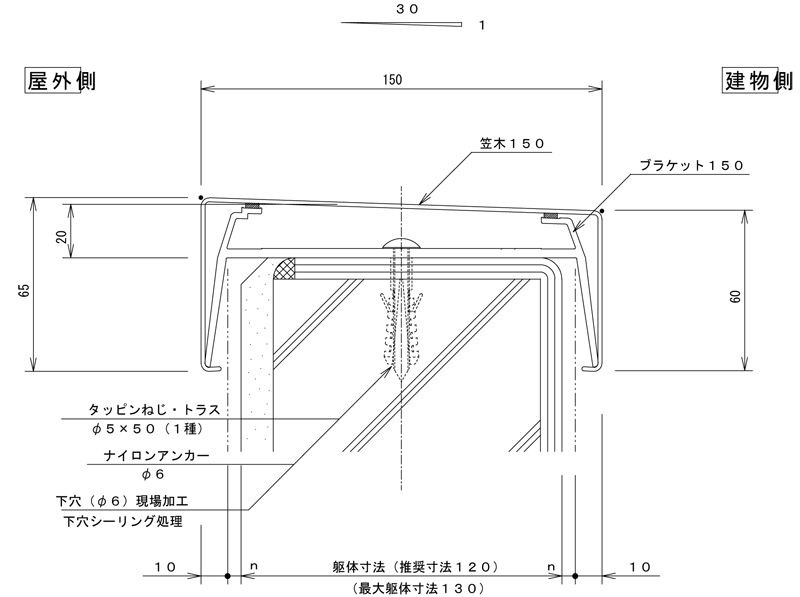 RC造・鉄骨造、その他幅広い用途に応えるスタンダード笠木です。笠木幅150mm 長さは1000mm~3000mm以内でご希望の長さを㎜単位でご注文できます。