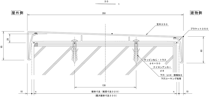 RC造・鉄骨造、その他幅広い用途に応えるスタンダード笠木です。笠木幅350mm 長さは1000mm~3000mm以内でご希望の長さを㎜単位でご注文できます。