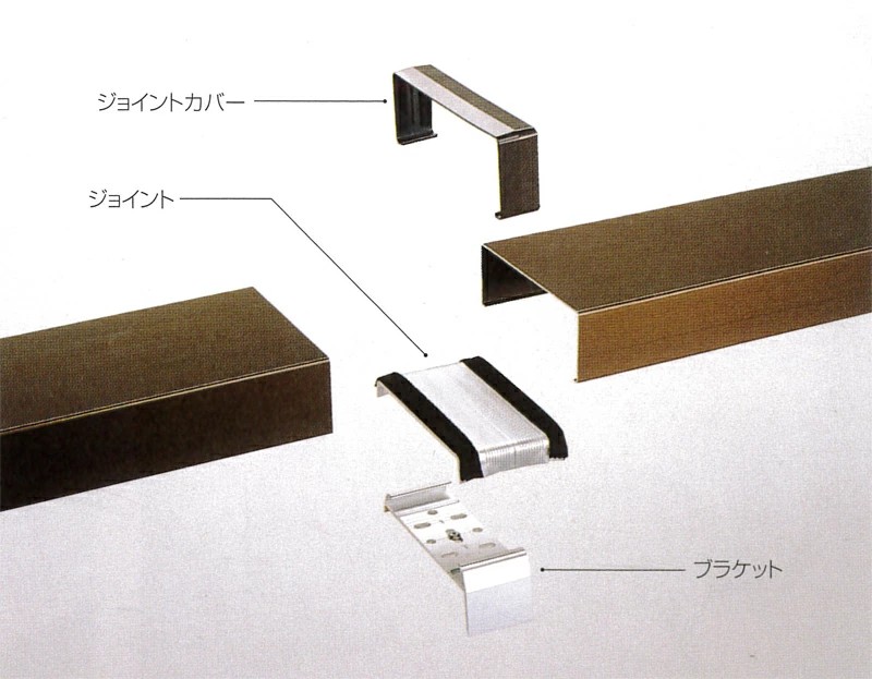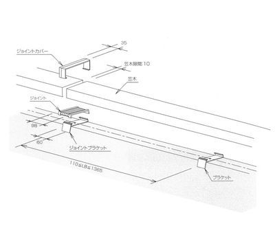 笠木のジョイント部分に使用する「ジョイントカバー」「ジョイント」「ジョイントブラケット」の構成図になります。