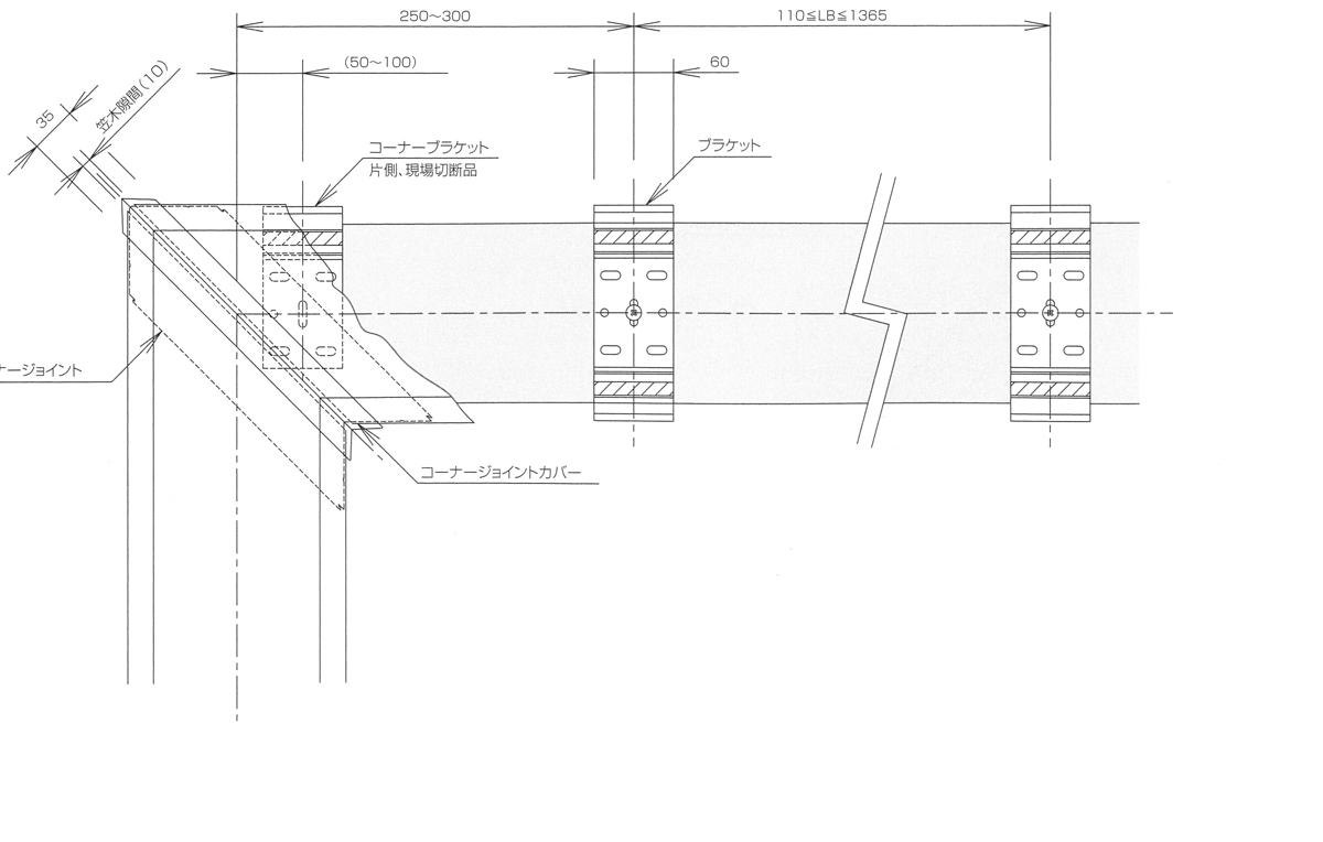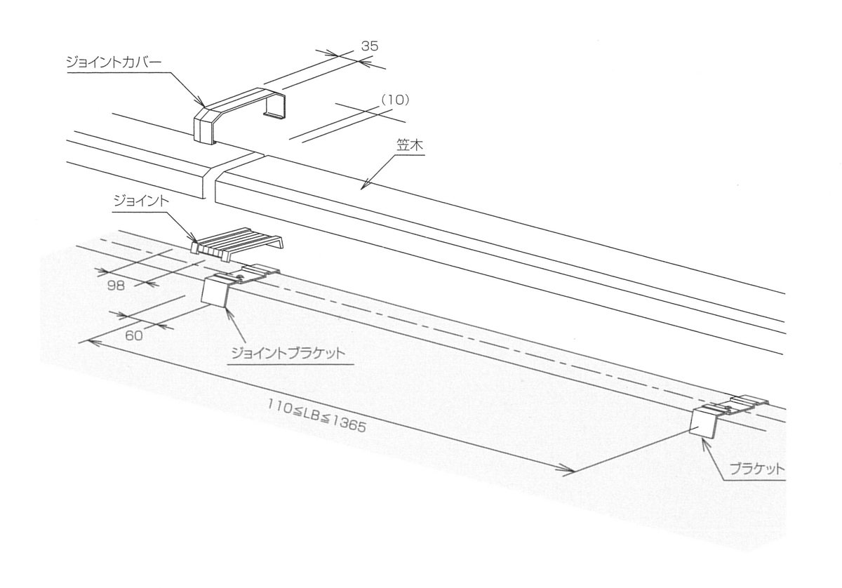 笠木のジョイント部分に使用する「ジョイントカバー」「ジョイント」「ジョイントブラケット」の構成図になります。