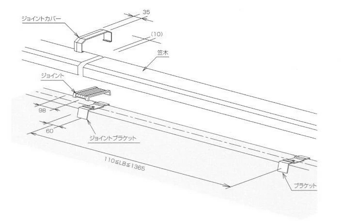 笠木のジョイント部分に使用する「ジョイントカバー」「ジョイント」「ジョイントブラケット」の構成図になります。
