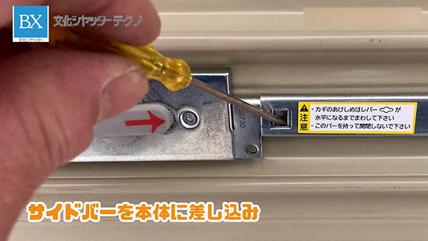 サイドバーを本体に差し込み、精密ドライバーでカシメます。