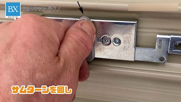サムターンを回し、スムーズに動くことを確認します。