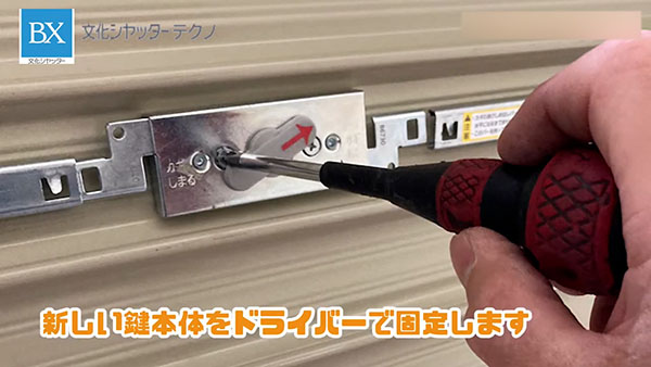 新しい鍵本体をドライバーで固定します。