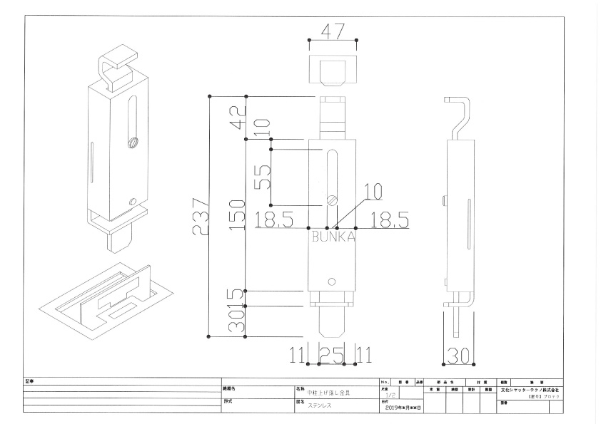 文化シヤッター製耐風ロック上げ落とし金具 ステンレス製