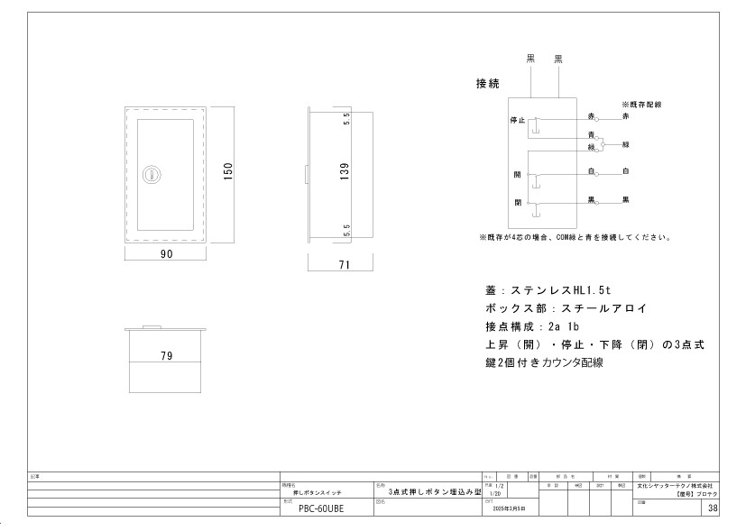 商品ページに掲載している配線図は、文化シヤッター製のもので接点構成は、2a 1bになります。