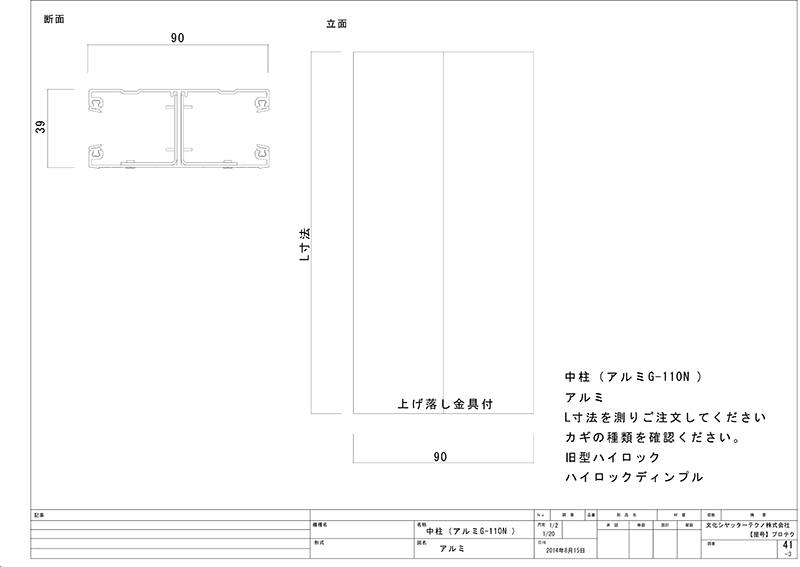 文化シヤッター製中柱アルミ 【G-110N型】(ホワイト)m/¥18,480です。販売は1mからになります。