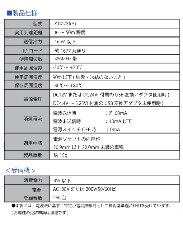 ・本製品は自動車専用です。 自動車以外では使用しないでください。