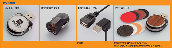 ・セレクルーズⅡをコンソールボックスに入れて使用すると、周囲の物が当たって誤動作する可能性や、すぐに操作することができないため、付属の USB延長ケーブルでセレクルーズⅡをコンソールボックスの外に出しての使用となります。 そのため、 USBポートがコンソールボックス内にある場合、 コンソールボックスからケーブルを外に出せるかご確認ください。